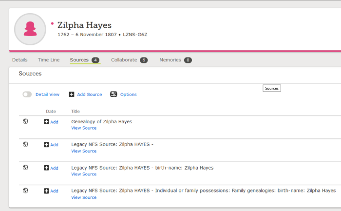 Another source merely refers to objects without providing details. Apparently the person who posted this has family objects related to Zilpha or knows of someone who has these objects or knows something about the objects if not who has them or where they are. Apparently someone has crafted a genealogy.