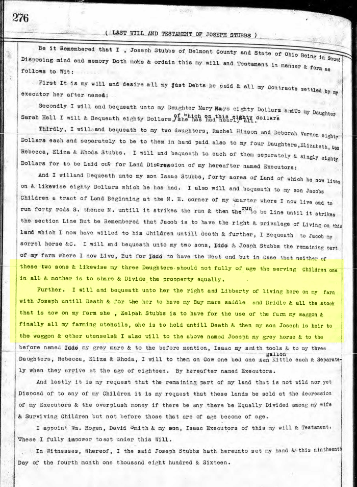 We know this because by the reference to her in the will (see below) that Joseph Stubbs left when he died in 1816.