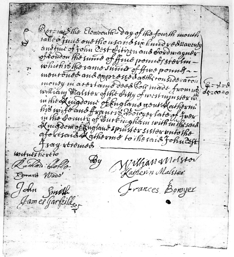 William Malster of the Citty of Westminster wth