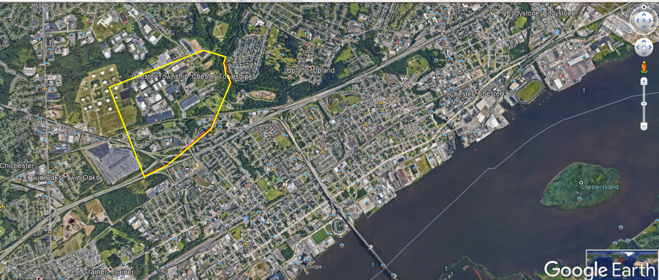Approximation of size and location of Hopewell of Kent depicted on Google Earth Map.