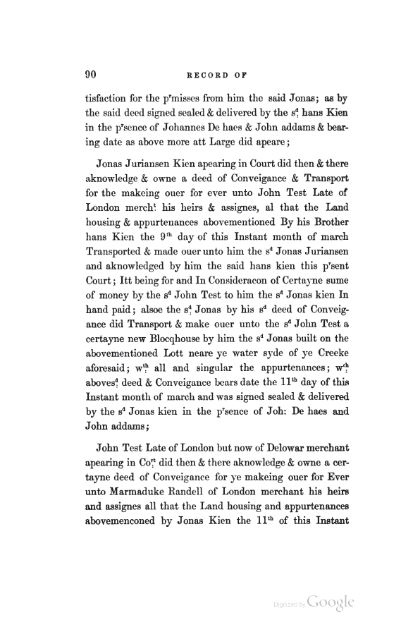 Here John Test is described as a merchant Late of London and as a Delaware merchant