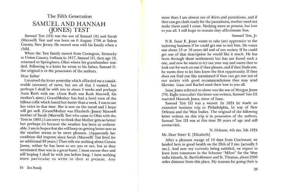 | The Fifth Generation: Samuel and Hannah (Jones) Test | page 25 |